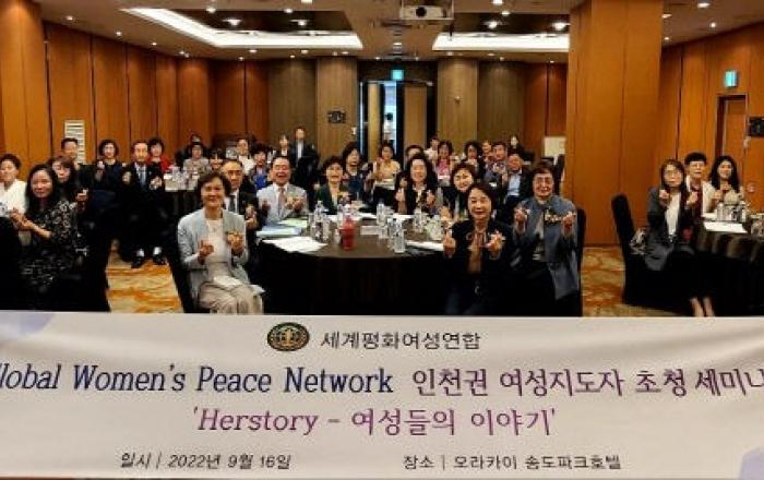 세계평화여성연합(이하 '여성연합') 인천시지부는 16일 인천 오라카이송도파크호텔에서 인천·부천·김포 지역 여성 지도자의 교류와 협력을 통한 한반도 평화통일 기반 조성을 위해 'GWPN(Global Women's Peace Network) 인천권 지도자 초청세미나'를 개