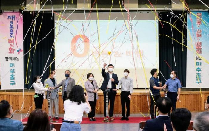 인천시 미추홀구(구청장 이영훈)는 14일 2022년 건전한 조직문화 선포식을 개최했다.구는 지난 4월 직원들 참여를 통해 '성희롱·갑질·괴롭힘 없는 건강한 도시 미추홀구를 위한 10가지 약속'을 만들었고 7월부터 지난달까지 모든 부서와 동 행정복지센터가 참여한 2022