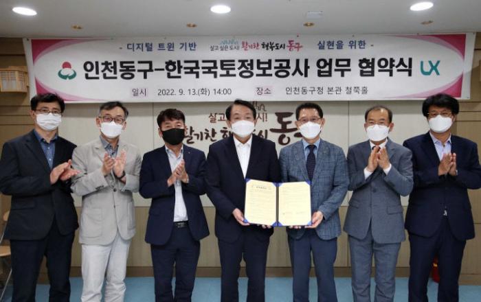 인천시 동구(구청장 김찬진)는 13일 한국국토정보공사(인천지역본부장 이화영)와 인천 기초자치단체 최초로 디지털 트윈 기반 행정 체계를 구축하기 위한 업무협약을 체결했다고 밝혔다.이번 협약에 따라 양 기관은 ▲디지털 트윈 행정 실현을 위한 3차원 가상도시 구축 및 교류
