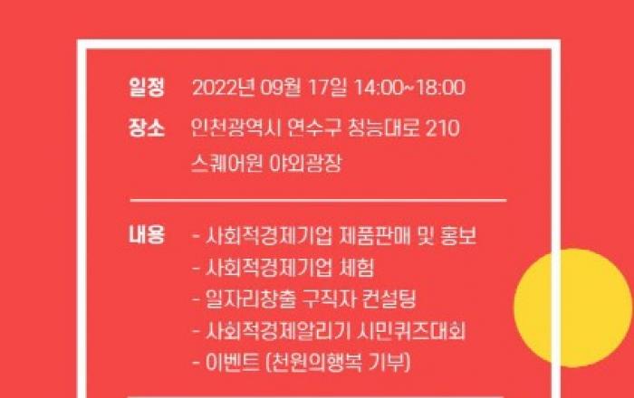 인천시 연수구(구청장 이재호)는 17일 스퀘어원 야외광장에서 '연수구 사회적경제 나눔 한마당'을 개최한다고 밝혔다.이번 행사는 사회적기업, 마을기업, 자활기업 등 연수구 사회적경제기업들과 지역주민 간 소통 활성화를 위해 기획됐다.행사는 사회적경제기업 제품 판매를 비롯해