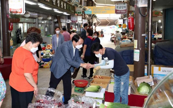 찬진 인천동구청장이 지난 17~19일 코로나19 재확산과 물가상승 등으로 어려움을 겪고 있는 전통시장을 찾아 시장 상인들의 애로사항을 청취했다.이번 현장방문은 취임 후 첫 전통시장 방문으로 송현·현대·중앙시장 등 주요 시장을 방문해 상인들의 고충을 청취하고 전통시장 활