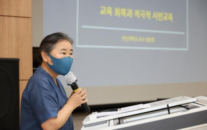 인천광역시교육청은 16일 본청 직원 500명을 대상으로 한신대학교 강순원 교수(유네스코 아시아·태평양 국제이해교육원 이사회 의장, 교육부 교육회복지원위원회 위원)를 초빙해 ‘교육회복과 적극적 시민교육’이라는 주제로 특강을 실시했다.강순원 교수는 코로나19는 교육 뿐만