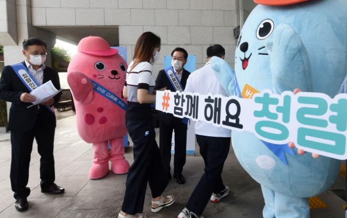인천시(시장 유정복)는 17일 '8월 청렴의 날(10.2)'을 맞아 휴가철 해이해질 수 있는 공직기강을 살피고 청렴 문화의 확산과 실천의지를 다지고자 '시장과 함께 하는 청렴 캠페인'을 실시했다.이번 캠페인에 참가한 유정복 시장은 출근하는 직원들을 대상으로 이해충돌방지