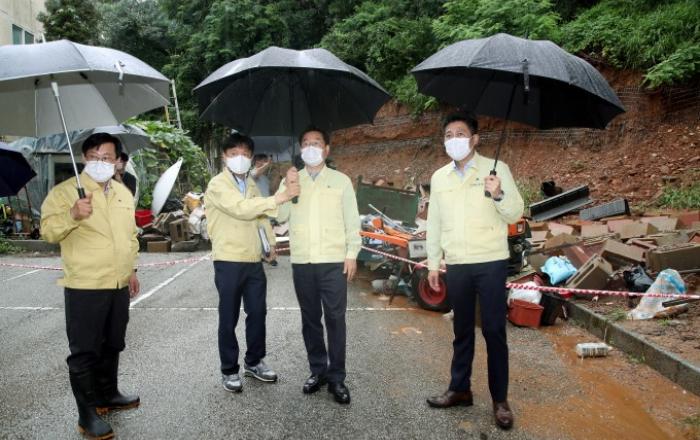 김정헌 인천 중구청장은 집중호우로 비 피해가 발생한 수해 현장을 찾아 현장 점검에 나섰다. 구에 따르면 지난 8~10일까지 호우경보가 발표된 중구 전동지역은 326mm의 누적강수량을 기록했고, 시간당 60~90mm 기습적 폭우로 주택, 도로 침수 등 피해 상황이 속출했