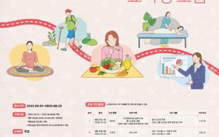 인천광역시(시장 유정복)와 인천관광공사(사장 민민홍)는 인천 "웰니스관광 인재양성을 위해 인천 시민 및 인천 웰니스관광지 종사자 등을 대상으로 ‘인천 웰니스관광 아카데미’교육을 오는 25일부터 실시한다" 고 밝혔다. ‘인천 웰니스관광 아카데미’는 인천 웰니