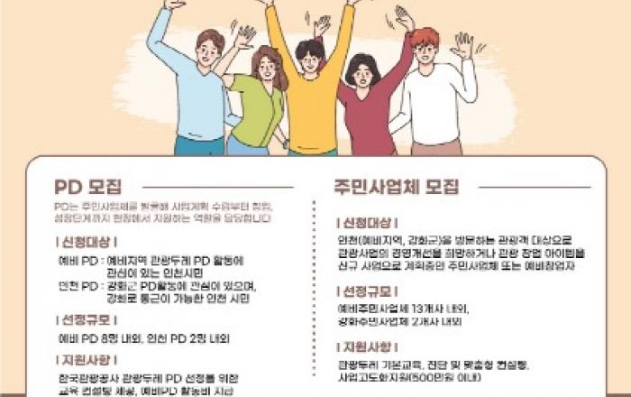 인천광역시(시장 유정복, 이하 인천시)와 인천관광공사(사장 민민홍, 이하 공사)는 9월 4일까지 ‘2022년 인천 관광두레 사업’에 참여할 지역활동 주민과 사업체를 공모한다. ‘관광두레 사업’은 주민의 자발적 참여와 지역자원의 연계를 통해 관광사업체를 육성하고 지역일