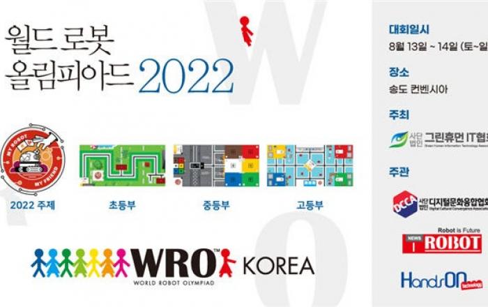 미래 과학 로봇인재 육성의 장인 '2022 월드로봇 올림피아드 한국대회'가 오는 13일부터 14일까지 양일간 송도컨벤시아에서 개최된다.인천시가 후원하고 사단법인 그린휴먼IT협회가 주최하는 이번 대회는 4개 종목, 초·중·고등부 212팀, 참가인원 454명 등 총 1천여