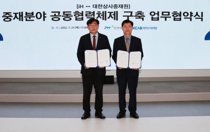 인천도시공사(iH)는 21일 대한상사중재원(원장 맹수석)과 중재제도를 활용하여 분쟁·갈등을 효과적으로 해결하기 위한 업무협약을 체결했다고 밝혔다.대한상사중재원은 1966년 설립된 국내 유일의 상설 법정 중재 기관으로국내·외에서 발생하는 분쟁을 예방 또는 해결하기 위해