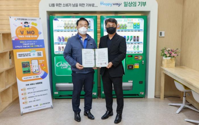 인천교통공사(사장 정희윤)는 지난 13일 본사 1층 사내복지공간 이룸에서 사단법인 대한아토피협회(회장 장재훈)와 업무제휴를 통해 '스마트 기부형 음료 자판기'를 설치했다고 밝혔다.기부형 자판기는 스마트폰 앱(VEMO)을 통해 음료 구매 시 구매 금액의 10%가 사회복지