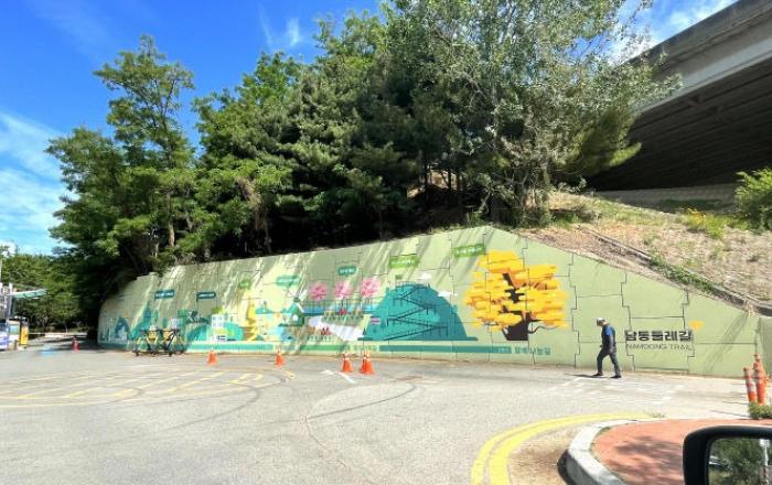 인천시 남동구는 인천대공원 동문 인근 옹벽에 남동둘레길 구간별 대표 명소를 표현한 벽화를 조성했다고 16일 밝혔다.인천대공원 동문은 남동둘레길 1코스와 2코스를 연결하는 지점으로, 구는 남동둘레길을 홍보하고 도심 볼거리를 제공하기 위해 벽화 조성을 추진했다.벽화에는 1