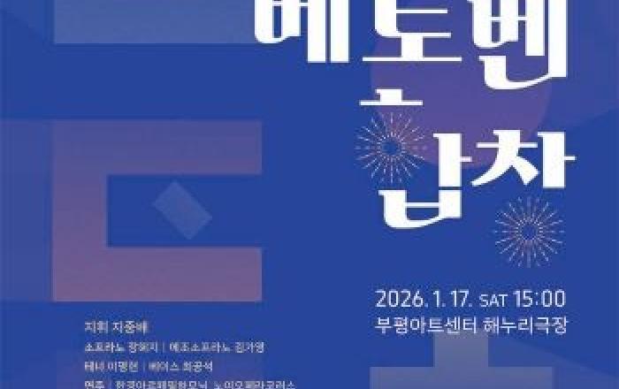 부평구문화재단은 오는 17일 오후 3시 부평아트센터 해누리극장에서 새해를 맞아 2026 부평아트센터 안부시리즈 ‘베토벤, 합창’을 개최한다.베토벤의 ‘에그몬트 서곡’을 시작으로 열리는 이번 공연은 1부에서 ‘꽃구름 속에’, ‘그리운 금강산’, ‘신 아리랑’ 등 우리