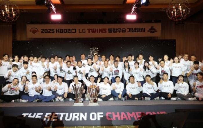 서울 LG트윈스는 11월 6일 곤지암리조트 그랜드볼룸에서 ‘2025 KBO리그 LG트윈스 통합우승 기념행사’를 열었다. 이번 행사에는 LG트윈스 구광모 구단주와 그룹 관계자 및 트윈스 선수단, 프런트 등 120여 명이 참석했다. 통합우승 기념행사는 우승 기념 영상 상영