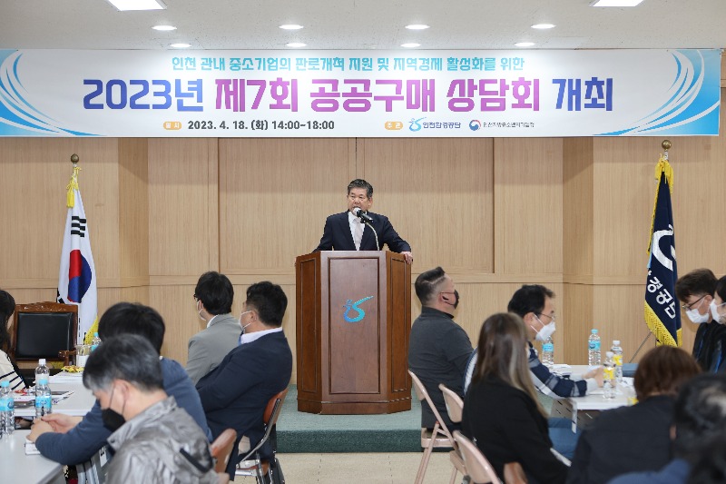 인천환경공단 최계운 이사장은 18일 공단 대회의실에서 중소기업의 판로 개척 지원을 위한‘제7회 공공구매 상담회’를 개최했다.