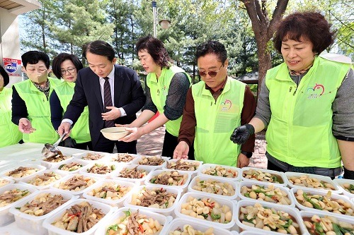 이날 행사는 취약계층 100세대에 쇠고기장조림, 무생채, 물김치, 멸치볶음 등 밑반찬 4종을 조리 후 전달하며 이웃의 정을 나누는 시간을 가졌다.