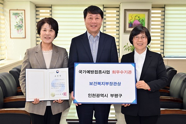 부평구 보건소는 감염병으로부터 주민의 건강을 보호하고 사회안전을 강화할 수 있는 분위기를 확산하고, 예방접종 참여를 적극적으로 유도해 국가 예방접종 사업의 성공적 추진에 이바지한 공을 인정받았다.