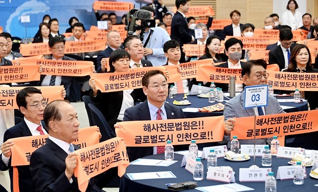 이에 유정복 시장은 “해사사건을 국내에서 신속하고 공정하게 해결해 국부 해외유출을 막고, 해사소송 전문인력을 양성해 해운‧항만기업들의 경쟁력을 강화하기 위해서는 공항이 있는 인천에 설치돼야 한다”고 강조하며, “지역 내 학계‧법조계‧언론과 인천시민들의 지지와 공감대 형성 및 적극적인 유치 활동에 함께 해달라”고 당부했다.