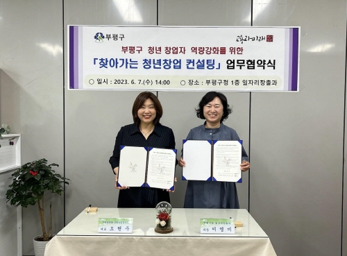 인천 부평구는 지난 7일 구청에서 고용과미래 사회적협동조합과 '2023년 부평구 찾아가는 청년창업 컨설팅' 업무협약을 체결했다.