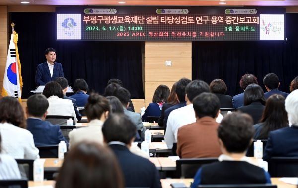 부평구는 차준택 구청장은 지난 12일 구청 중회의실에서 (가칭)부평구평생교육재단 설립 타당성검토 연구 용역 중간보고회를 개최했다.