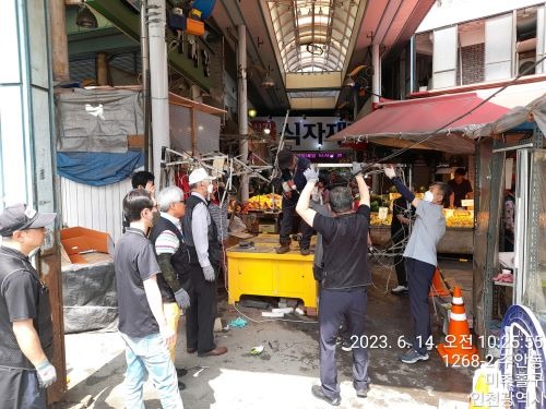 인천 미추홀구는 지난 14일 남부전통시장 동1문 출입구 인근의 불법노점 2개소에 대해 행정대집행을 실시했다.