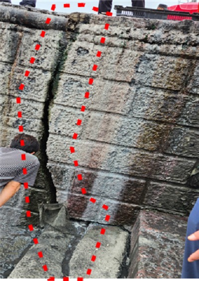 조사 결과 물양장 제방 옹벽과 상부에 다수의 균열이 발생했으며, 물양장의 타워폴의 기초가 파손되며 기울어지는 등의 문제가 발견됐다.