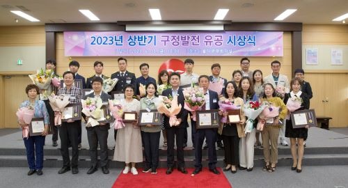 인천시 중구 김정헌 구청장이 지난달 30일 중구청 월디관 대회의실에서 ‘2023년 상반기 구정발전 유공 시상식’을 개최했다고 밝혔다.