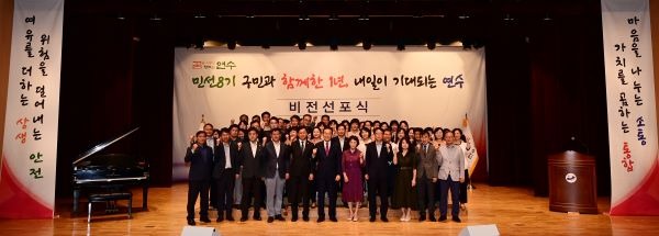 연수구 이재호 구청장은 지난 3일 구청 연수아트홀에서 민선8기 이재호 연수구청장 취임 1년을 맞아 지난 성과와 재정혁신 과정 등을 공유하고 연수구의 나아갈 미래를 제시하는 비전선포식을 개최했다.