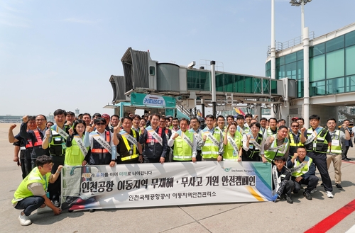 인천국제공항공사는 지난 3일 인천공항 제1여객터미널 항공기 주기장 지역에서 폭염으로 인한 항공종사자들의 안전사고를 예방하기 위해 '23년도 상반기 항공 안전 캠페인'을 시행했다고 4일 밝혔다.