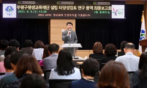 차준택 부평 구청장은 지난 9일 구청에서 (가칭)부평구평생교육재단 설립 타당성 검토 연구 용역 최종보고회를 개최했다고 밝혔다.