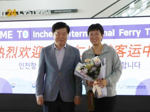 12일 오전 IPA 이경규 사장, 인천지방해양수산청 윤상린 선원해사안전과장, 인천광역시 윤현모 해양항공국장과 카페리 선사인 위동항운 박준영 대표는 코로나19로 인해 2020년 1월 한-중 카페리 여객 운송이 중단된 이후 3년 7개월 만에 인천항을 찾은 카페리 여객을 환영하기 위해 인천항 국제여객터미널 2층 통합홀로비에서 뉴골든브릿지Ⅴ호 선장 및 첫 승객 3명에게 꽃다발을 증정했다.