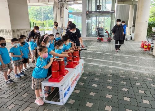 특히 소화기체험은 훈련용 물소화기를 활용, 실제 소화기와 똑같은 방식으로 조작하여 표적물을 적중시키는 프로그램으로 어린이들의 교육몰입도가 높다.