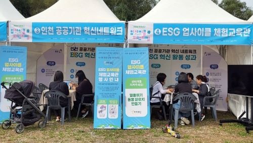 인천 공공기관 혁신 네트워크는 도시형 환경교육을 제공하는 사회적기업 ’터치포굿‘과 함께 체험교육관을 운영했으며, 어린이와 학생을 포함한 일반 시민을 대상으로 ▴폐현수막 새활용 ’멸종위기 동물 파우치 만들기‘ ▴해양 유리 쓰레기 새활용 ’바다보석 만들기‘ 등 생태계 보존과 환경 보호, 자원순환의 중요성을 일깨우는 체험 교육을 무료로 제공했다.