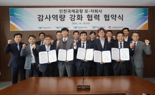 인천국제공항공사(이하 '공항공사')는 18일 오전 공사 회의실에서 산하 자회사들의 감사역량 강화 및 인천공항 내부통제 체계를 공고히 하기 위해 4개 자회사와 '감사역량 강화 협력을 위한 협약'을 체결했다고 밝혔다.
