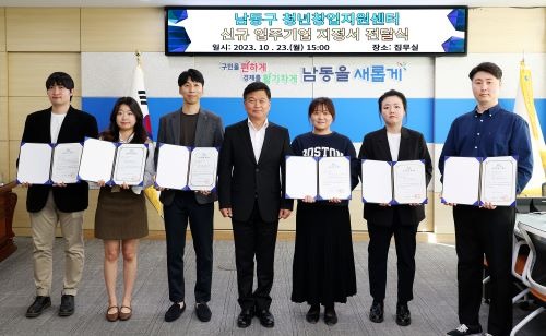인천시 남동구는 최근 구청장 집무실에서 남동구 청년창업지원센터 신규 입주기업 7개 팀에 입주기업 지정서를 전달했다고 24일 밝혔다.