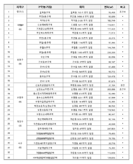 ※ 구역명 및 면적은 자치구 추천내용을 기준으로 작성된 것으로 향후 정비계획 수립 과정 등에서 변경될 수 있음