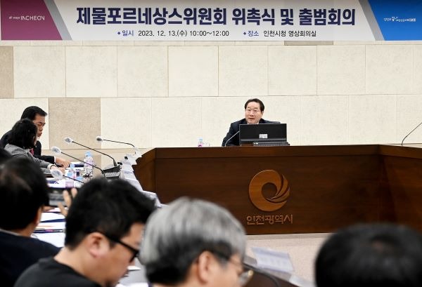 인천광역시는 12월 13일 시청 영상회의실에서 각계 전문가 등으로 구성된 ‘제물포르네상스 위원회’ 위원 30명을 위촉하고 제1차 회의를 개최했다고 밝혔다.