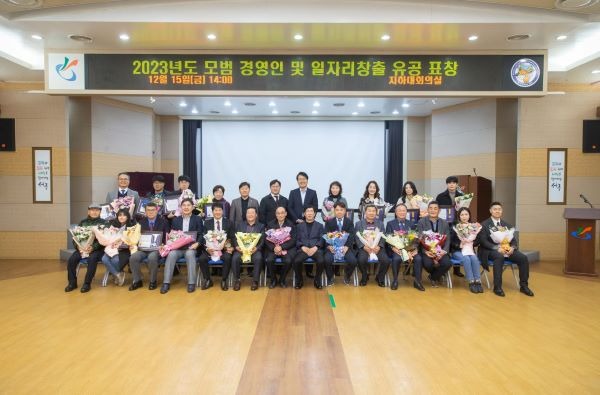 ‘일자리창출 유공 표창’ 수상자는 ▲뷰티풀파크관리공단 차장 윤서영, ▲㈜청우하이드로 대표이사 안송준, ▲㈜리팩 대표이사 이상건, ▲㈜이투인 대표이사 김혜경 등 총 4명이다