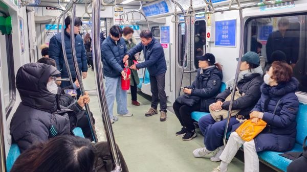 금일 체험교육은 ▲ 비상시 열차문 및 스크린 도어 개방을 통해 탈출하는 방법 ▲ 열차 화재 시 대응방법 및 소화기 사용법 ▲ 비상인터폰 사용방법 ▲ 역내 화재대피 마스크 사용방법 ▲ 노인, 어린이 등 교통약자의 비상시 대응요령 등으로 진행되었다.