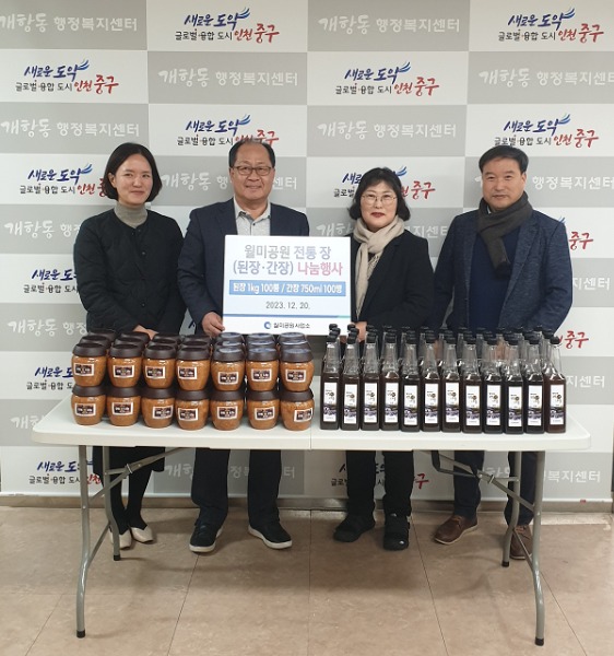인천월미공원사업소는 지난 20일 전통문화 계승을 위해 만든 된장과 간장 100개를 어려운 이웃에게 전달했다고 밝혔다.