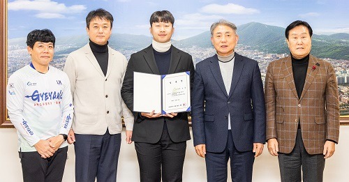 인천 윤환 계양구청장은 지난 21일 계양구청 소회의실에서 계양구청 양궁선수단에 입단한 컴파운드 종목 박승현 선수에게 임용장을 수여하고 선수단을 격려했다.