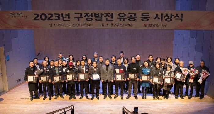 인천시 중구 김정헌 구청장은 지난 21일과 22일 각각 영종 중구청소년수련관과 원도심 한중문화관에서 ‘2023년도 구정 발전 유공 등 시상식’을 개최했다고 밝혔다.