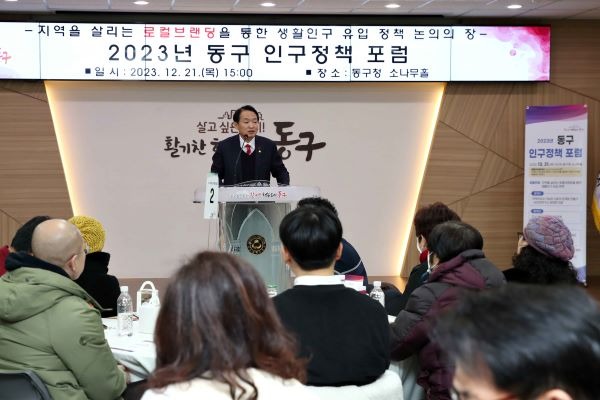인천 동구 김찬진 구청장은 최근 동구청 소나무홀에서 지역 소멸에 대비한 ‘2023년 동구 인구정책 포럼’을 개최했다고 밝혔다.