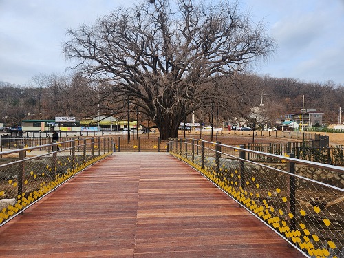 은행나무를 감싸 흐르는 하천은 폐기물 및 토사를 파낸 뒤 큰 돌 쌓기로 깨끗하게 정비했고, 약 38년 된 노후 보행교를 목재로 보수해 포토존을 만들었다.