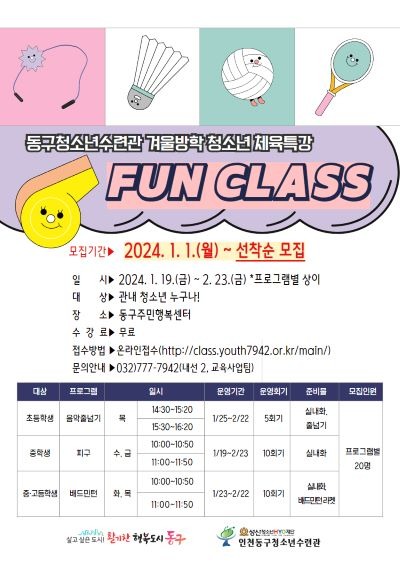 인천 동구청소년수련관은 청소년 체육 특강