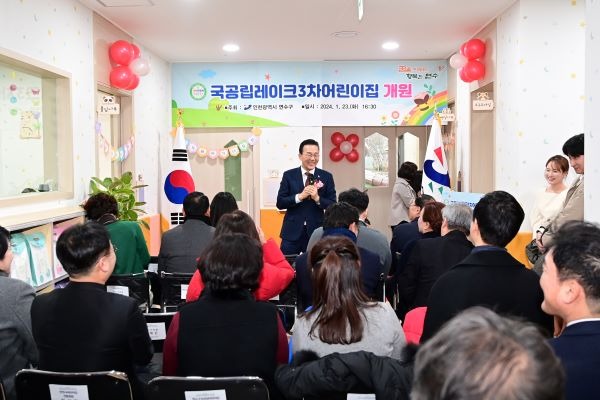 인천 연수구 이재호 구청장은 지난 23일 송도4동 힐스테이트레이크송도3차 공동주택 내 ‘국공립레이크3차어린이집’을 설치하고 본격 운영에 들어갔다고 밝혔다.