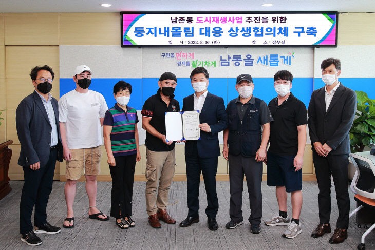 남동구는 최근 남촌동 도시재생 주민협의체 대표, 남촌동 내 건물주 및 상가임차인 대표들과 상생 협약을 맺었다고 18일 밝혔다.
