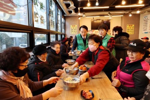 이번 ‘행복만땅 정성가득 사랑의 식사나눔’은 동절기 기력이 떨어진 어르신들에게 떡국을 대접해 활력을 회복시키기위해 마련됐다. 금창동 새마을부녀회와 새마을지도자협의회가 함께 주관하고 장터식당과 장터삼겹살이 후원하여 금창동경로당 소속 어르신 40여 명에게 떡국과 과일 등을 대접했다.