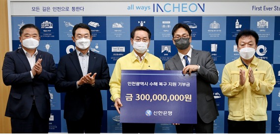 신한은행 박성현 부회장 또한 “침수피해로 어려움을 겪고 있는 시민들이 하루 빨리 예전 생활로 돌아갈 수 있기를 바란다”며 “인천시금고 은행으로서 인천을 위한 사회공헌 활동에 앞장서 나가겠다.”고 말했다.