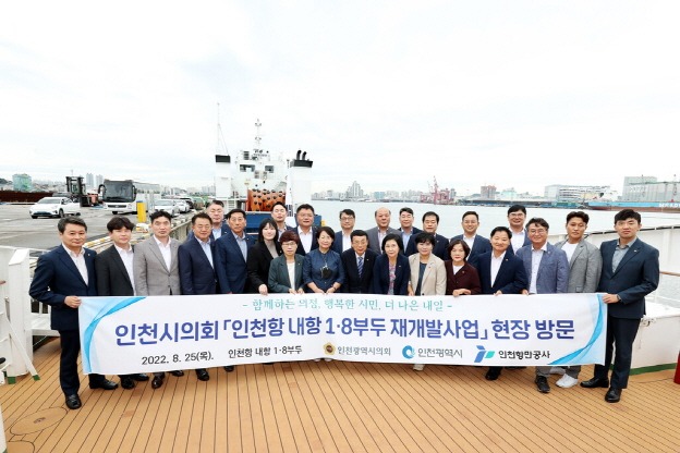 인천시의회는 25일 항만기능을 재편해 해양문화 도심 공간 조성이 추진되고 있는 ‘인천항 내항 1·8부두 재개발사업’ 현장을 찾아 인천항만공사 및 인천시와 직접 소통하며 상호 협력방안을 논의했다.