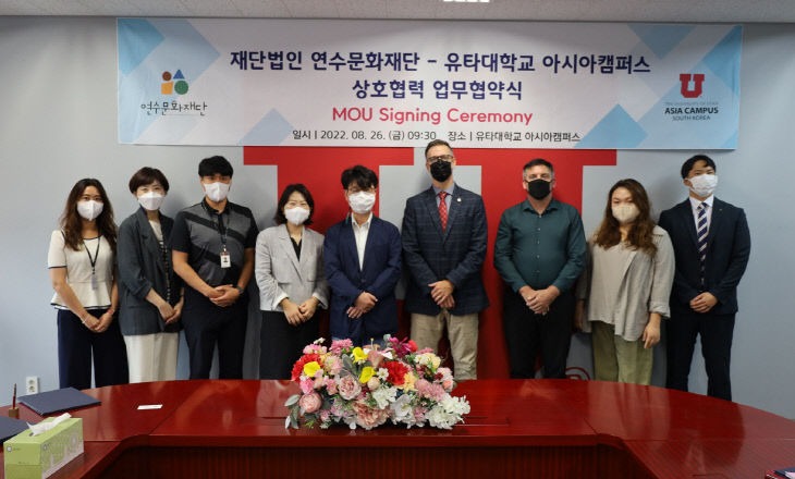 유타대학교 아시아캠퍼스는 26일 인천 송도 글로벌캠퍼스에서 연수문화재단과 인천 지역 문화예술 진흥을 위한 업무협약을 체결했다고 밝혔다.