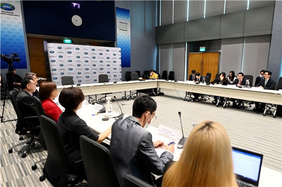 인천시는 민선8기 취임 후 첫 해외 출장길에 오른 유정복 시장이 16일 싱가포르에 있는 APEC(아시아태평양경제협력체) 사무국을 방문해 레베카 파티마 스타 마리아(Datuk Dr Rebecca Fatima Sta Maria) 사무총장과 접견했다고 밝혔다.